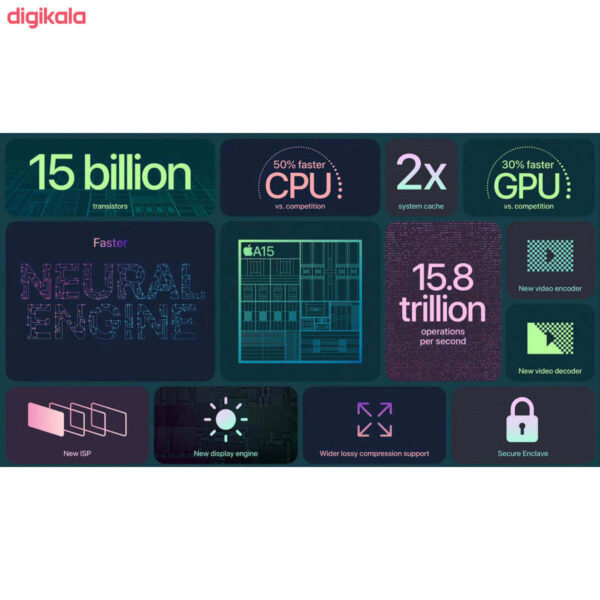 - تراشه Apple A15 Bionic (5 nm) Chipset